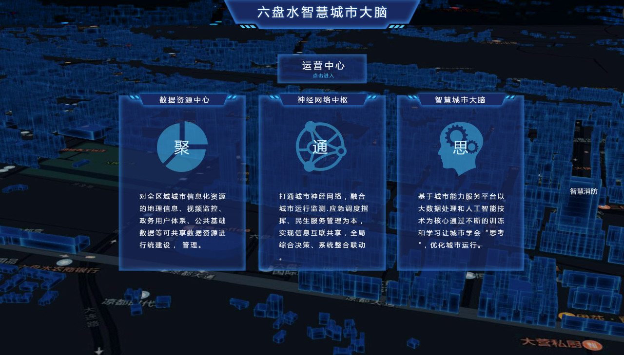 “六盘水智慧城市大脑”就好比人类的大脑,数据就是血液,各个版块就是身体器官,它把散落在城市各个角落的数据进行采集、交换、共享、应用、统计,进而服务于城市运营的各个环节。